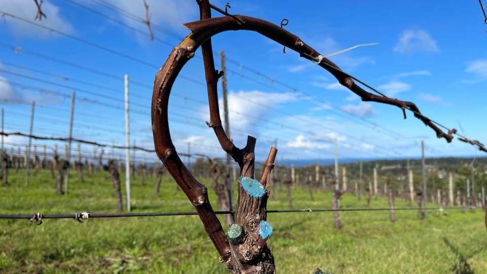 Vistaseal pruning wound dressing on cane pruned vines, June 2022.